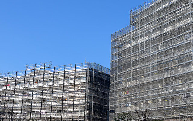 当社は足場工事のエキスパートとして、新築工事はもちろんのこと、補修工事・解体工事の現場にも対応しています。足場資材は規格品ですのでどの工事も同じように見えますが、その設置位置などのわずかな違いにより後作業のしやすさなど作業効率を左右しかねない大事な仕事です。私たちは工事内容や現場状況に応じて安全で作業効率のよい最適な足場を提供します。