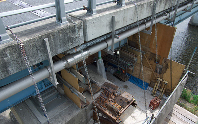 社会インフラとしての道路や橋梁などの補修工事に必要な吊り棚足場を設置しています。当社は長年の経験と様々なノウハウを駆使して、特殊な足場も安全確実に提供しています。